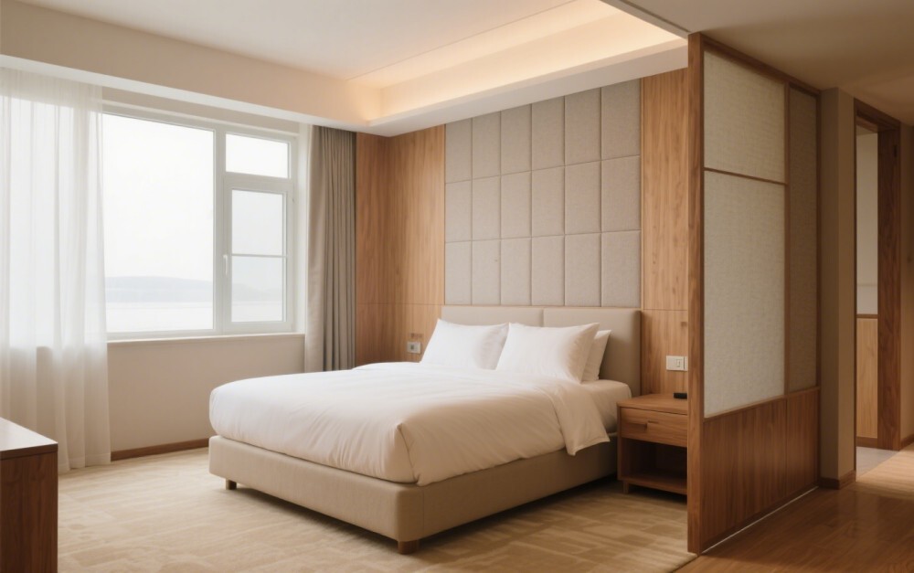 Garantizamos la tranquilidad y la privacidad en las habitaciones para mejorar la calidad del sueño. Incorporamos un fondo acústico absorbente y un diseño acústico zonificado.