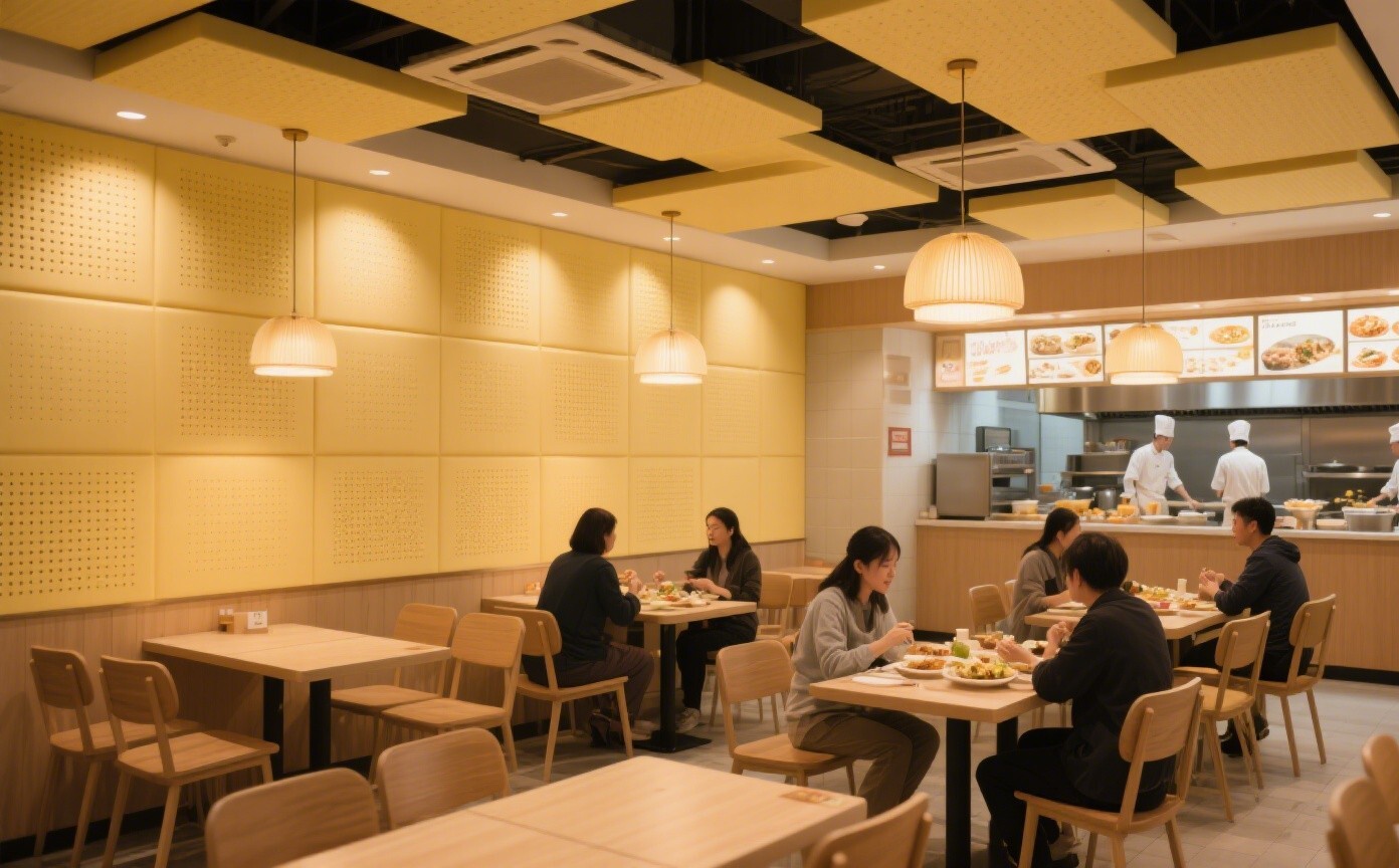 Los espacios comerciales utilizan paneles acústicos de PET y deflectores de techo para mejorar la experiencia de compra al reducir el ruido y crear un entorno más agradable para los clientes.