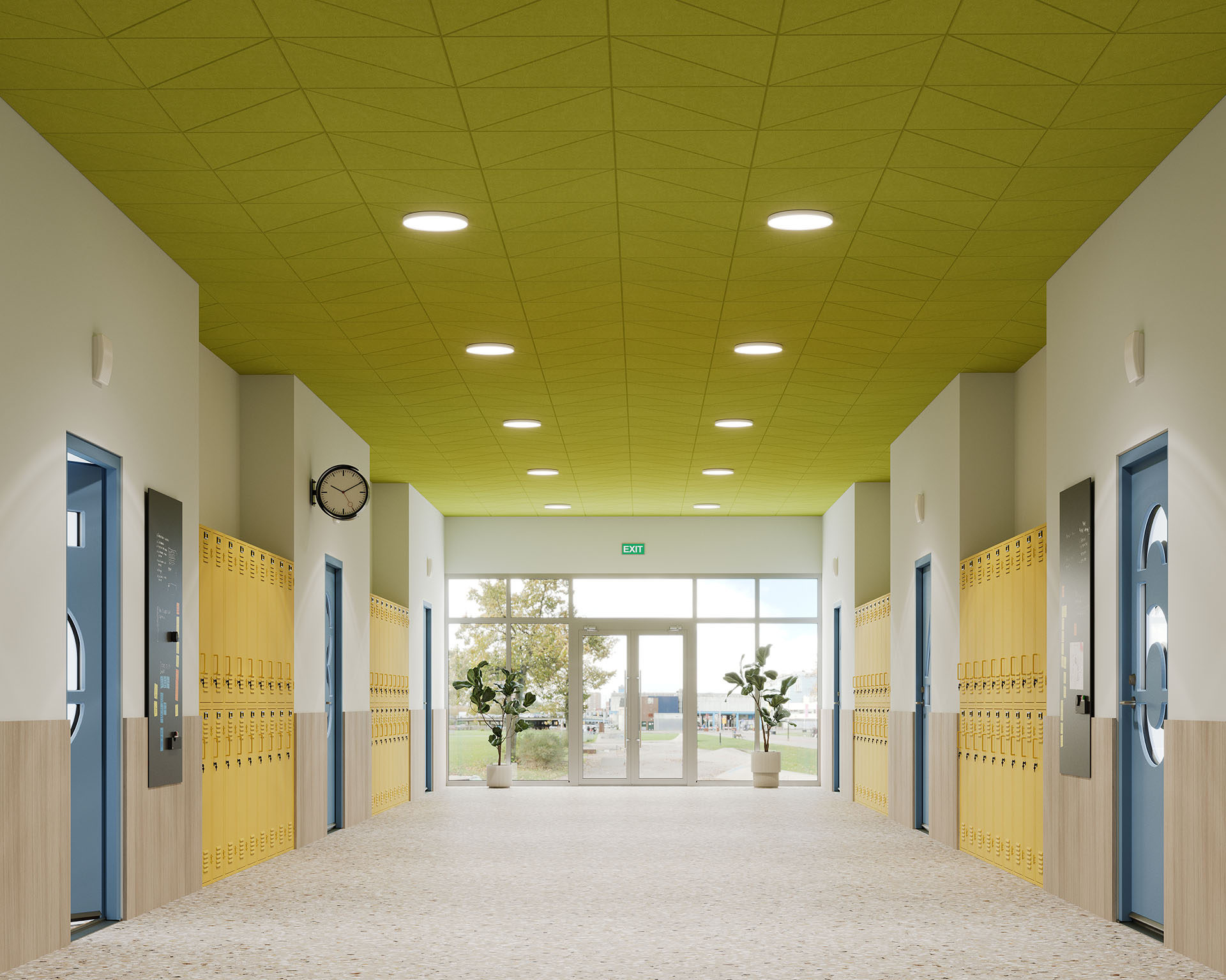 Las escuelas, aulas, salas de conferencias, bibliotecas y otros espacios educativos se benefician de los paneles y deflectores acústicos FELT para mejorar la claridad del habla y reducir las distracciones por ruido.